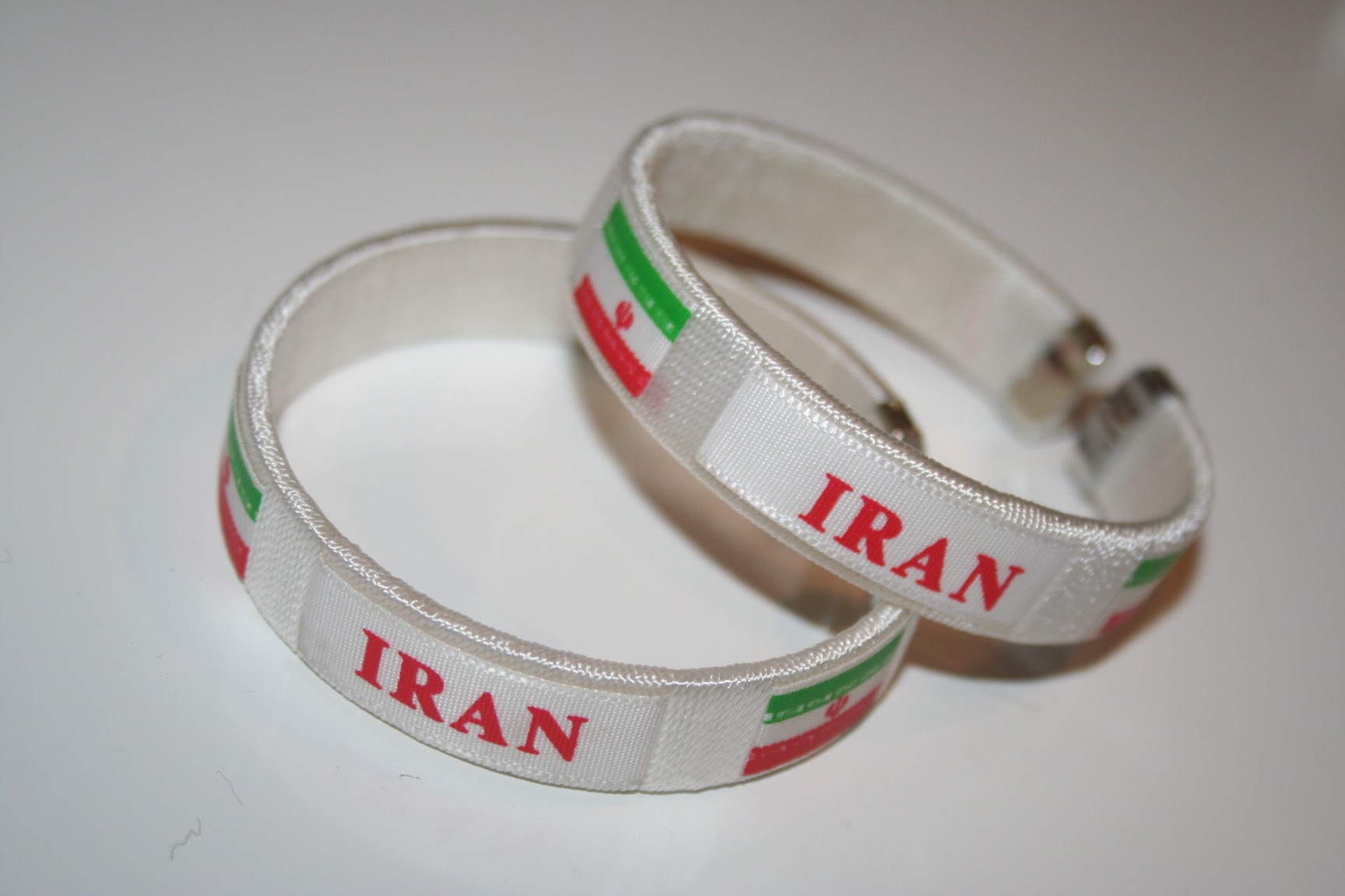 THIS BRACELET IS MADE WITH FLEXIBLE PVC WITH NYLON OVER IT...IT HAS IRAN WRITTEN ON IT WITH THE IRAN COUNTRY FLAG GOING ALL AROUND THE BRACELET ...