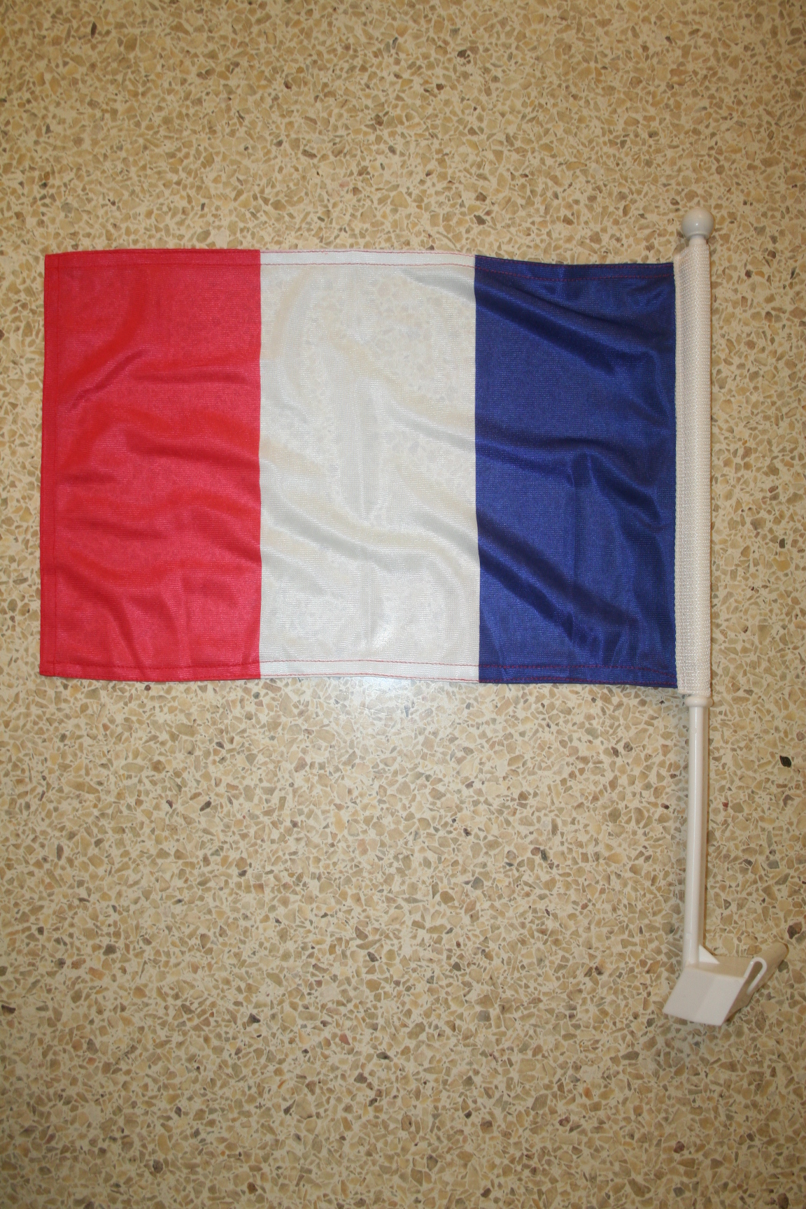YOU ARE PURCHASING THIS HIGH QUALITY FRANCE COUNTRY CAR AUTOMOBILE FLAG WITH POLE...IT HAS A PICTURE OF THE FRENCH FLAG ON IT AND IT FITS RIGHT INTO YOUR CAR WINDOW.