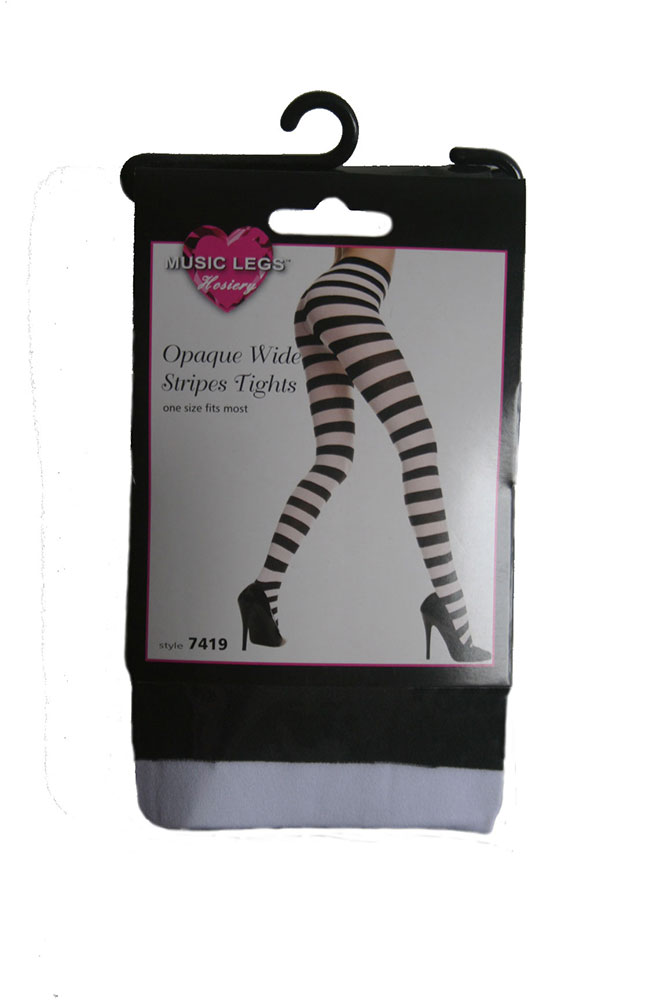 LADIES MUSIC LEGS BLACK WHITE WIDE STRIPES TIGHTS WITH FEET .. ONE SIZE FITS MOST .. STYLE 7419 .. 100-175 LBS .. New