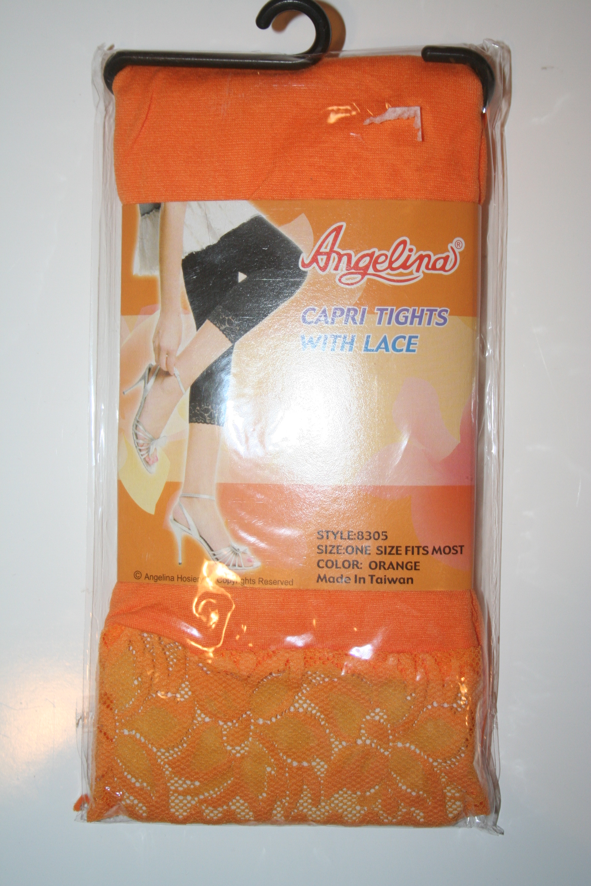 YOU ARE PURCHASING THIS PAIR OF ORANGE OPAQUE FANCY CAPRI FOOTLESS TIGHTS TO MID-CALF WITH LACE MADE BY ANGELINA ... THEY ARE A GREAT QUALITY TIGHT ...