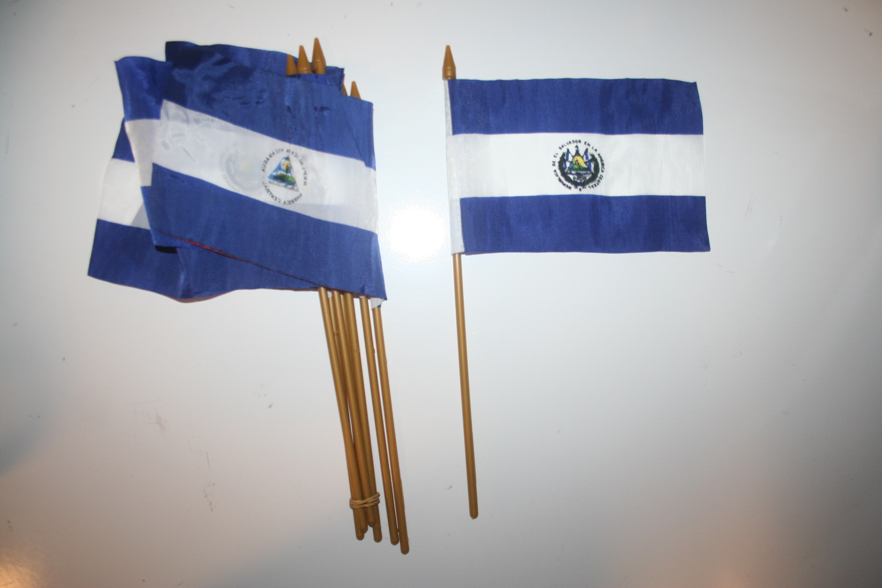 12 EL SALVADOR NATIONAL COUNTRY FLAG 4" X 6" SMALL STICK FLAG ON 10" POLE .. NEW