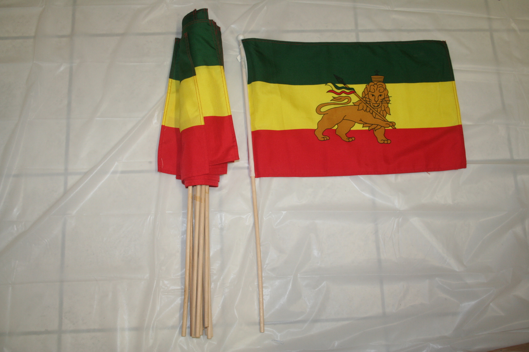 YOU ARE PURCHASING THESE 12 ETHIOPIA LION OF JUDAH COUNTRY FLAG 12" X 18" INCHES STICK FLAGS WITH 2 FOOT STICK