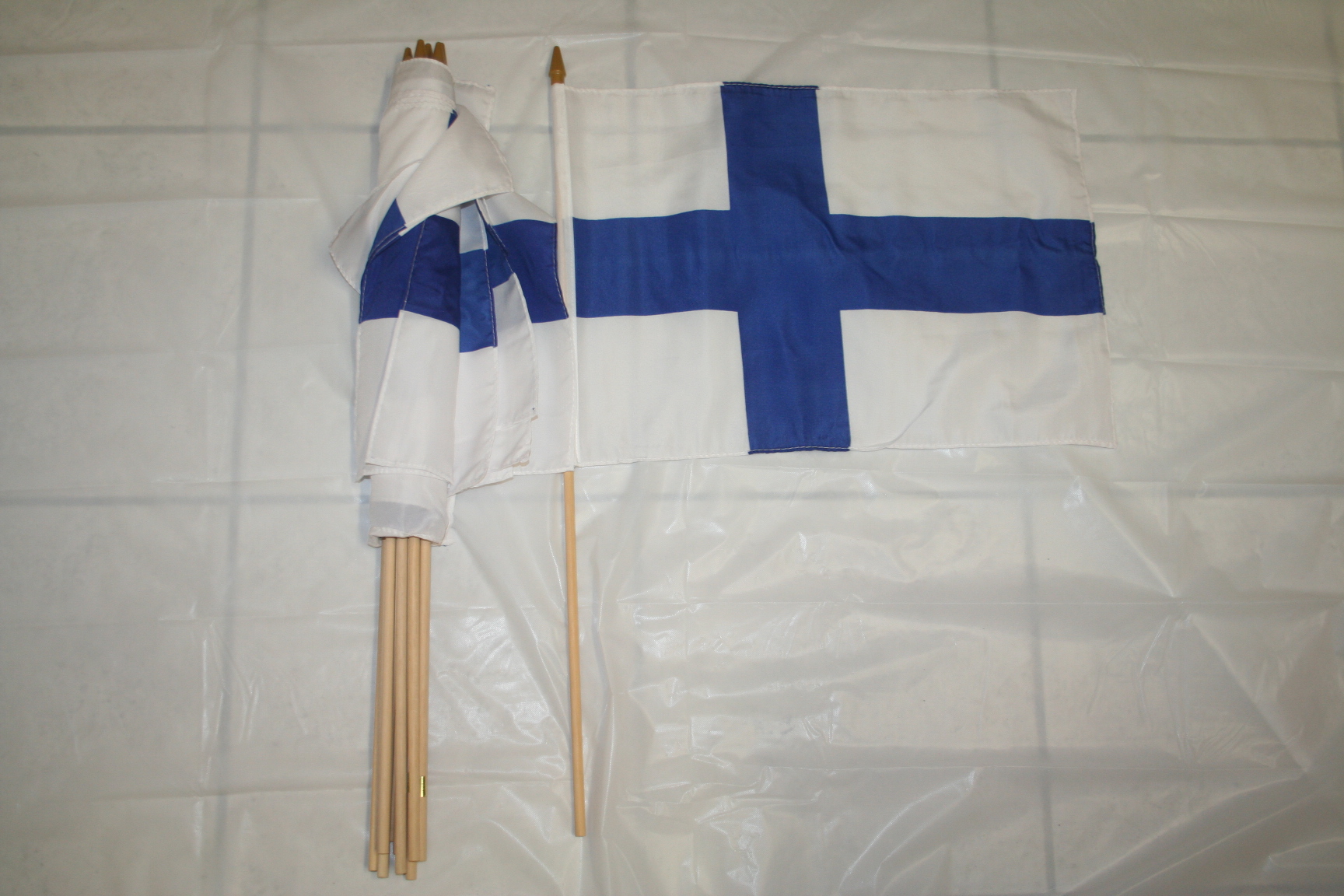 YOU ARE PURCHASING THESE 12 FINLAND COUNTRY FLAG 12" X 18" INCHES STICK FLAGS WITH 2 FOOT STICK