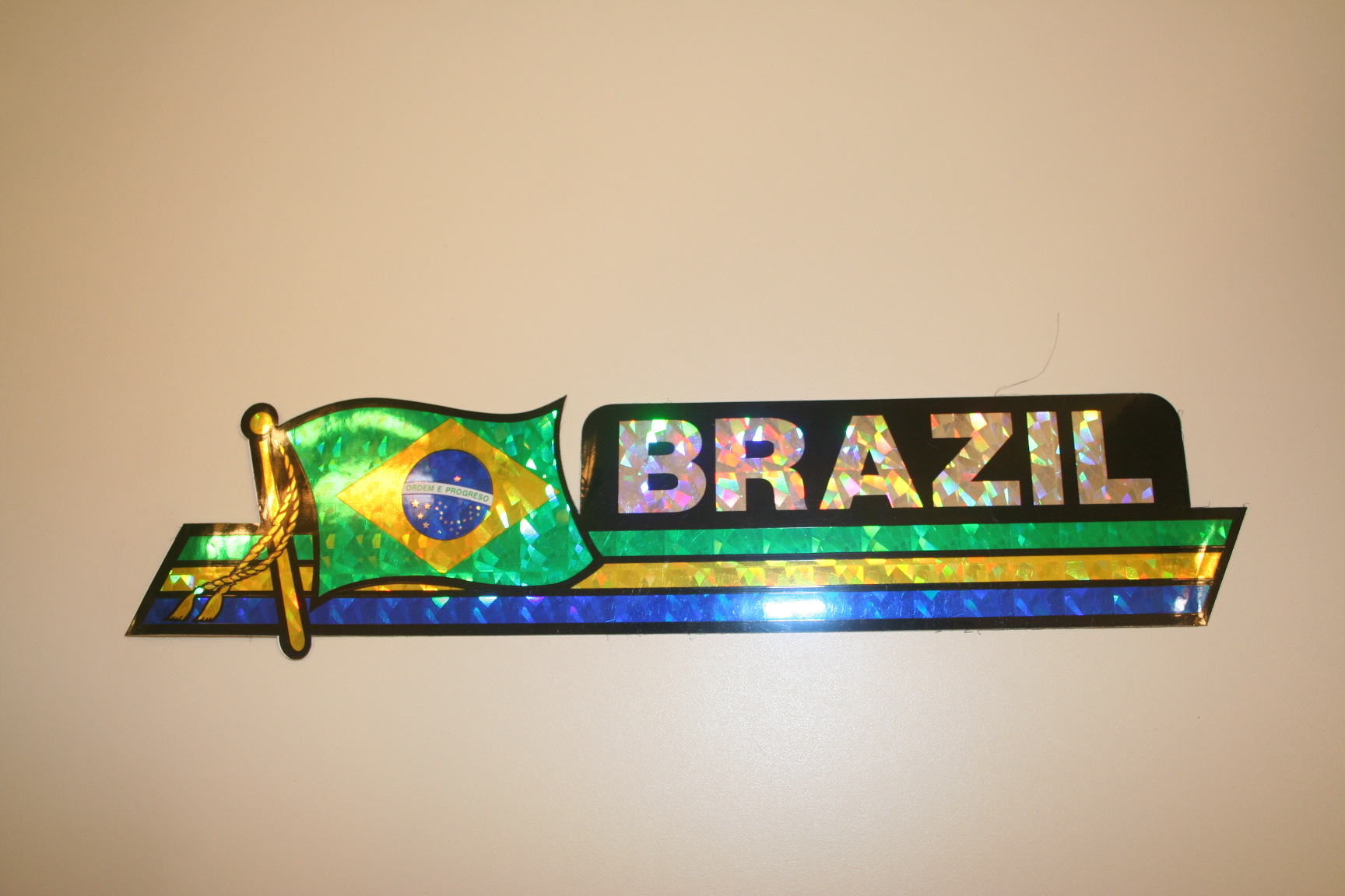 YOU ARE PURCHASING THIS BRAZIL COUNTRY FLAG METALIC BUMPER STICKER...FIFA WORLD CUP SOCCER FOOTBALL