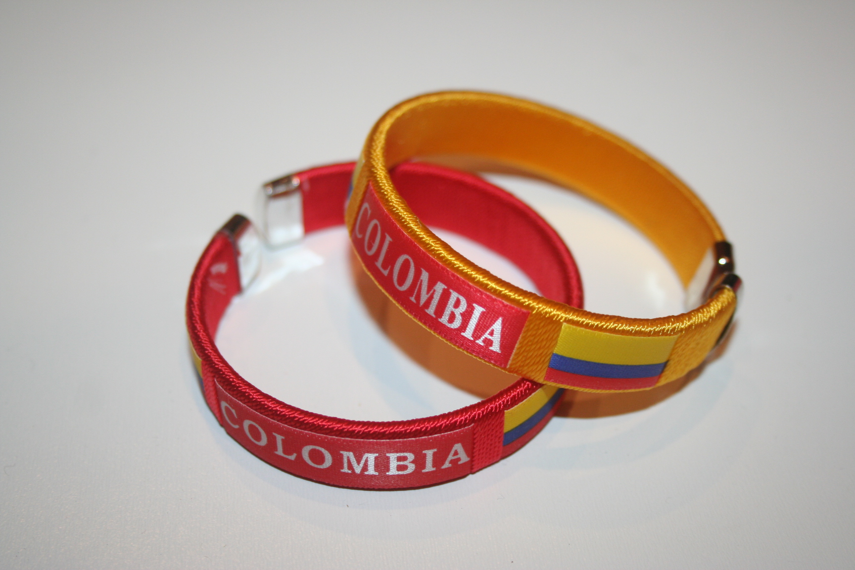 YOU ARE PURCHASING THESE 2 COLOMBIA COUNTRY FLAG FLEXIBLE BRACELETS WRISTBANDS... THE BRACELET IS MADE OF FLEXIBLE DURABLE PVC WITH NYLON WOVEN AROUND IT. CHOOSE EITHER 2 YELLOW OR 2 RED OR (1 RED & 1 YELLOW)