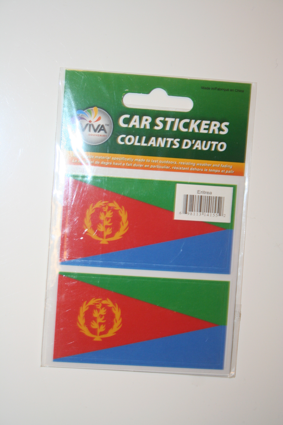 YOU ARE PURCHASING THESE SET OF 2 ERITREA COUNTRY FLAG DECAL CAR BUMPER STICKER EMBLEMS ... NEW IN PACKAGE