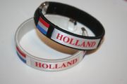 YOU ARE PURCHASING THESE 2 GREAT HOLLAND COUNTRY FLAG FLEXIBLE C BRACELETS WRISTBANDS .. YOU CAN CHOOSE EITHER 2 WHITE OR 2 BLACK OR (1 BLACK & 1 WHITE) BRACELET ... THE BRACELET IS MADE OF FLEXIBLE DURABLE PVC WITH NYLON WOVEN AROUND IT.