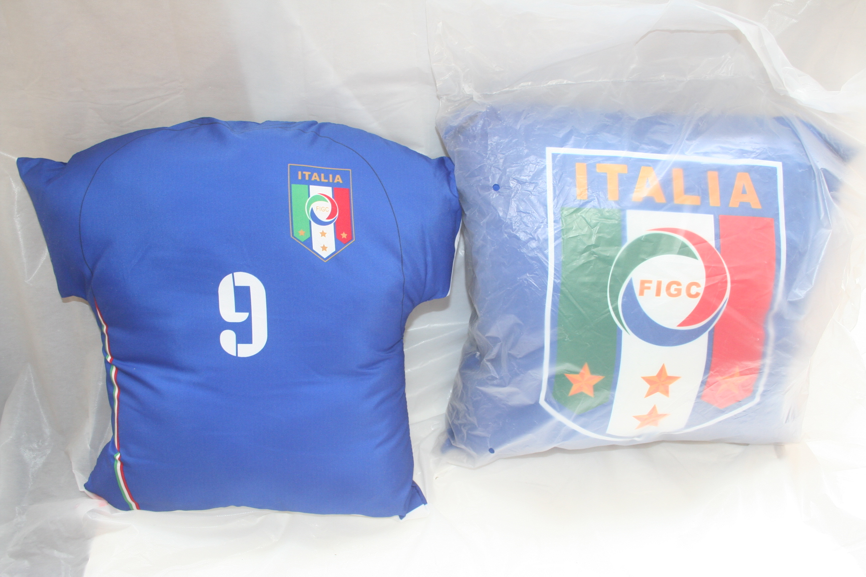YOU ARE PURCHASING THESE 2 ITALIA FIFA WORLD CUP SOCCER FOOTBALL LARGE PILLOWS ... YOU GET 1 ITALY SQUARE PILLOW AND 1 TONI #9 JERSEY PILLOW .. YOU GET BOTH OF THESE PILLOWS ...