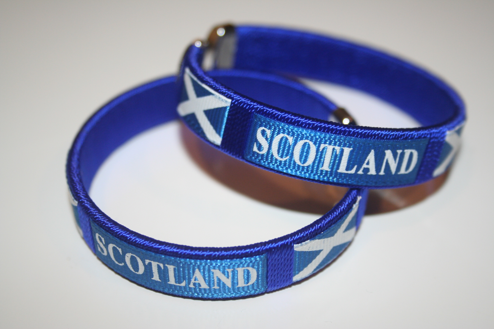 ITS A METAL BRACELET WITH NYLON OVER IT...IT HAS SCOTLAND WRITTEN ON IT WITH THE SCOTISH FOOTBALL FLAG ... FIFA WORLD CUP SOCCER FOOTBALL
