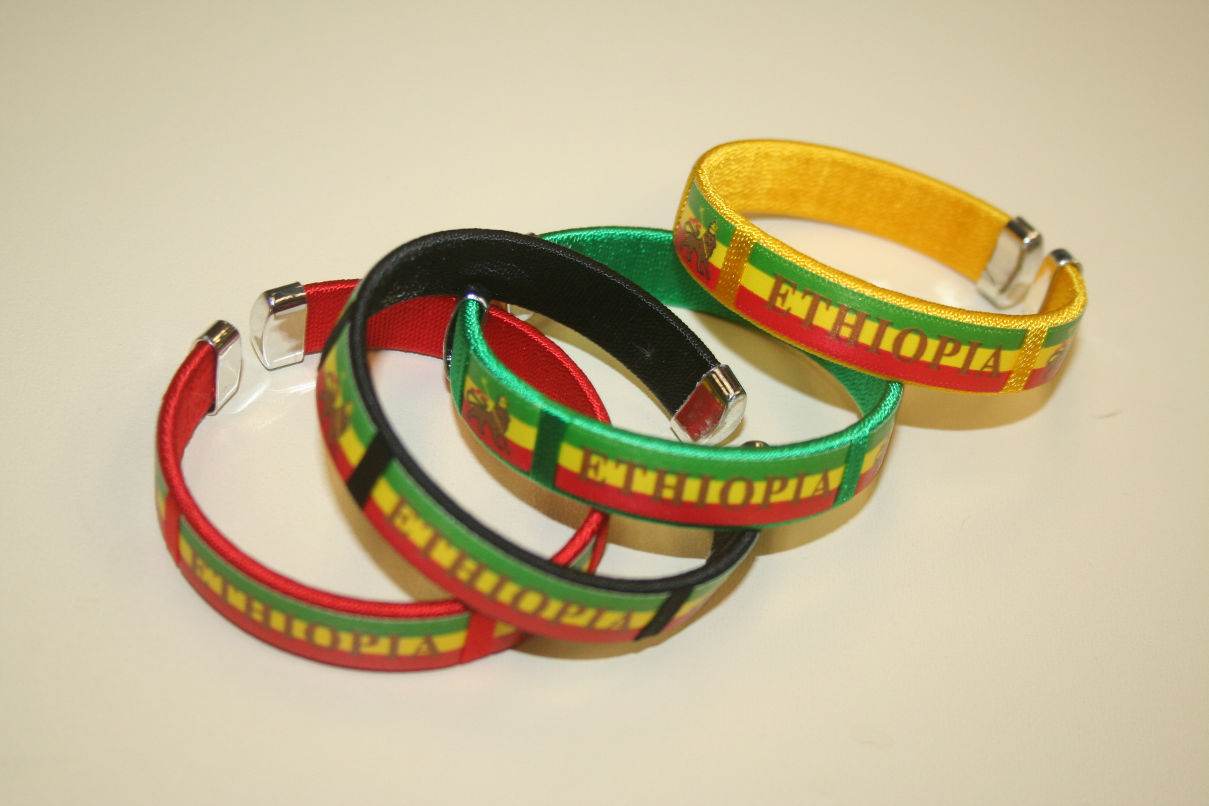YOU ARE PURCHASING THESE 4 ETHIOPIA COUNTRY FLAG FLEXIBLE BRACELETS WRISTBANDS VARIETY ... YOU GET 1 RED, 1 BLACK, 1 YELLOW AND 1 GREEN BRACELET ... NEW MERCHANDISE APPAREL