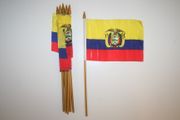 6 ECUADOR COUNTRY FLAG 4" X 6" SMALL STICK FLAG ON 10" POLE .. NEW