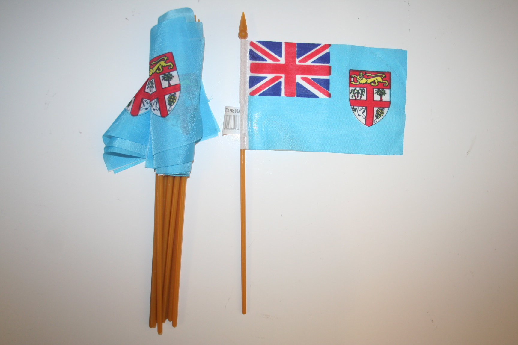 6 FIJI NATIONAL COUNTRY FLAG 4" X 6" SMALL STICK FLAGS ON 10" POLE .. NEW