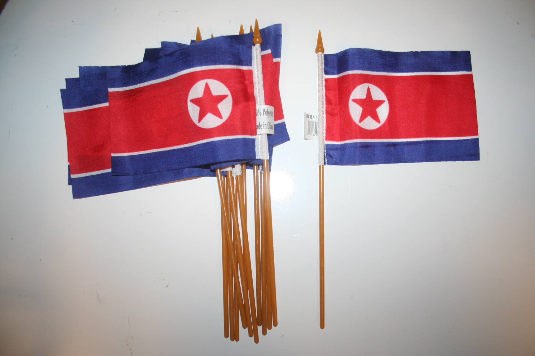 6 NORTH KOREA NATIONAL COUNTRY FLAG 4" X 6" SMALL STICK FLAGS ON 10" POLE .. NEW