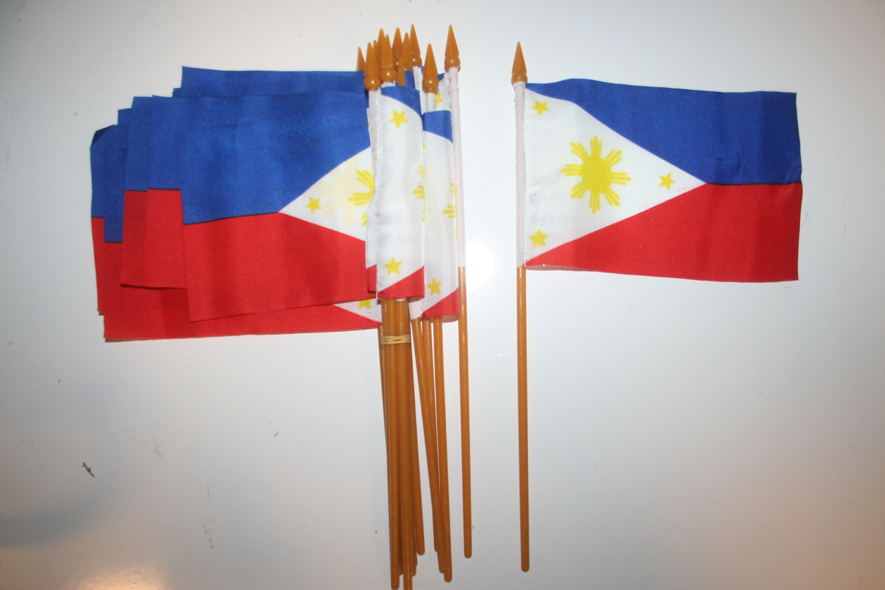 6 PHILIPPINES NATIONAL COUNTRY 4" X 6" SMALL STICK FLAGS ON 10" POLE .. NEW