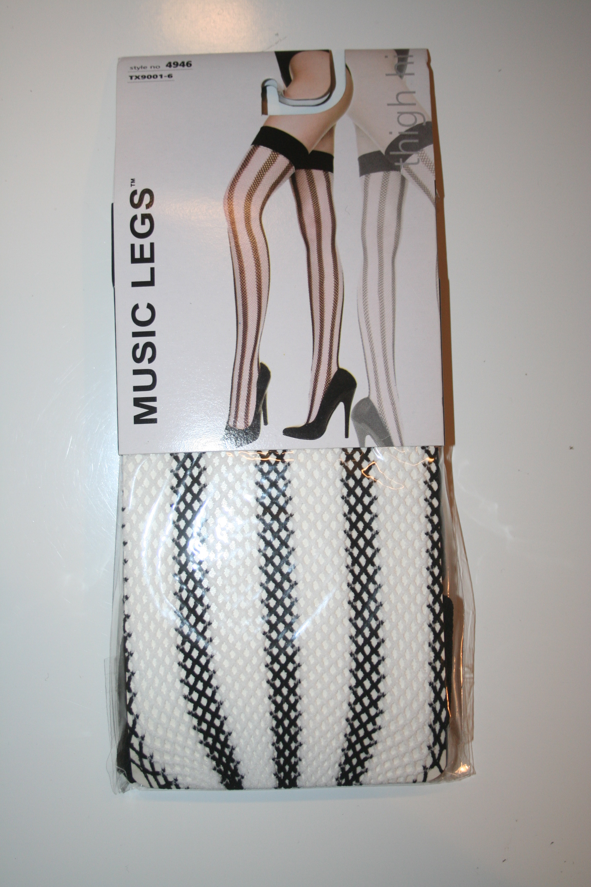 BLACK & WHITE HORIZONTAL STRIPED MESH STOCKINGS THIGH HIGHS .. NEW IN PACKAGE
