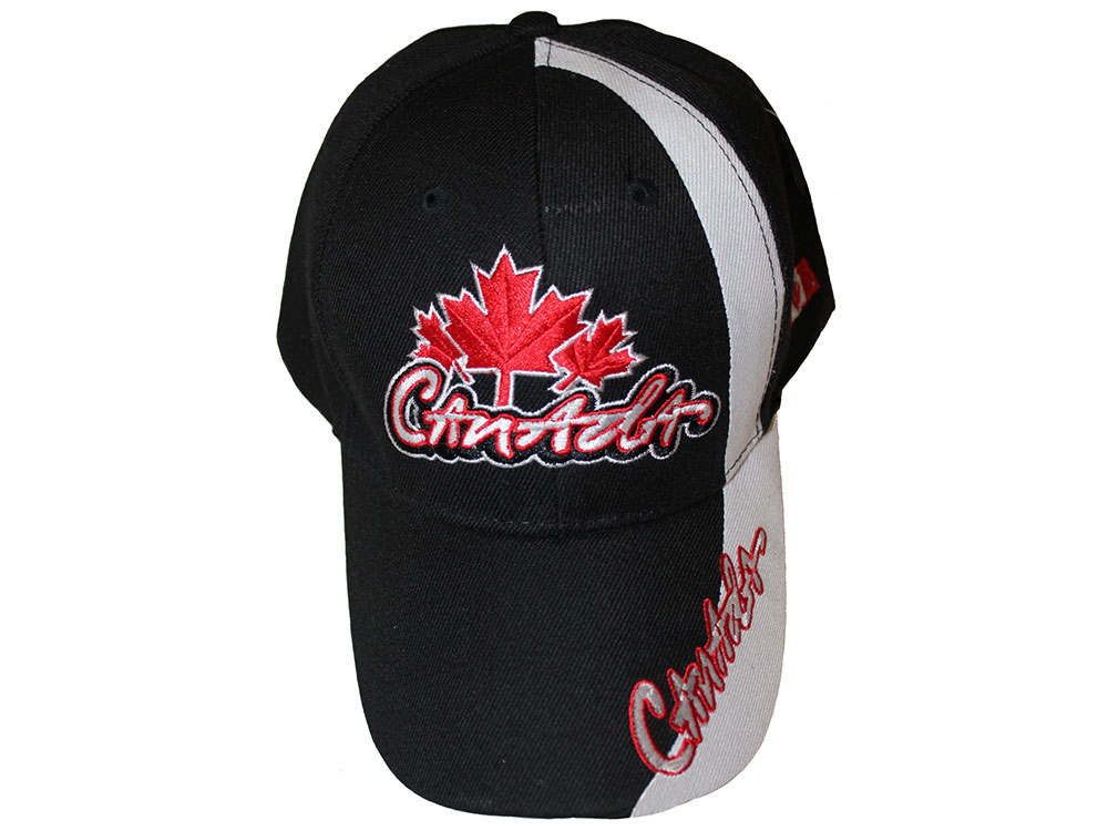 CANADA BLACK WITH WHITE STRIPE & RED LEAF EMBOSSED HAT CAP .. NEW
