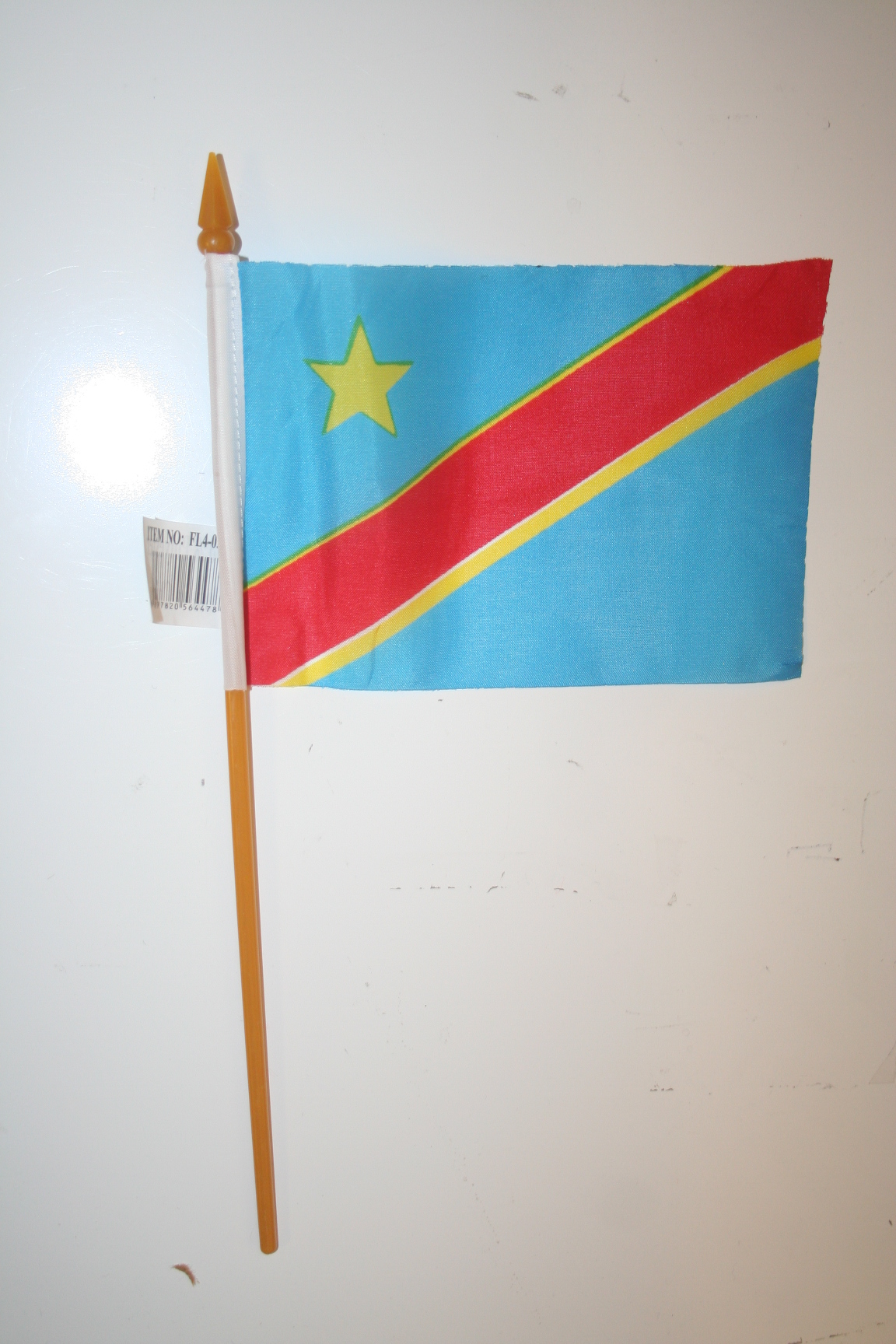 DEMOCRATIC REPUBLIC OF CONGO COUNTRY 4" X 6" SMALL STICK FLAG WITH 10" POLE .. NEW