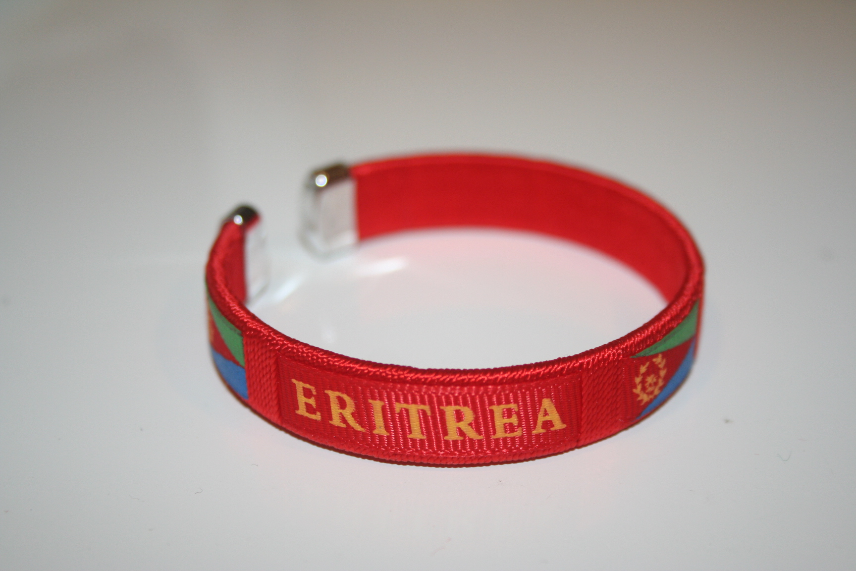 ITS A METAL BRACELET WITH NYLON OVER IT...IT HAS ERITREA WRITTEN ON IT WITH THE ERITREA FLAG ...