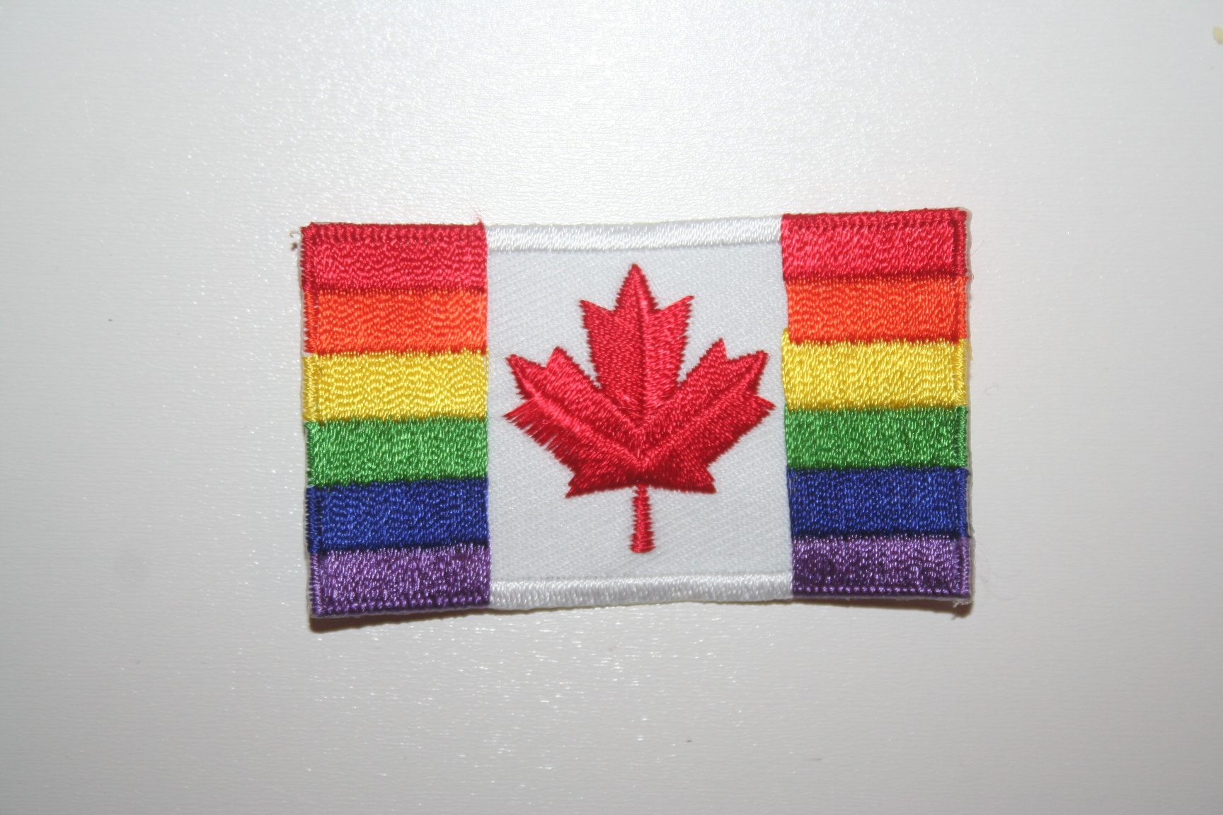 YOU ARE PURCHASING THIS GAY & LESBIAN PRIDE CANADA RAINBOW FLAG SMALL IRON-ON EMBROIDERED PATCH CREST BADGE ... IT IS VERY EASY TO IRON ON ANY ARTICLE OR YOU CAN SEW IT ON ...
