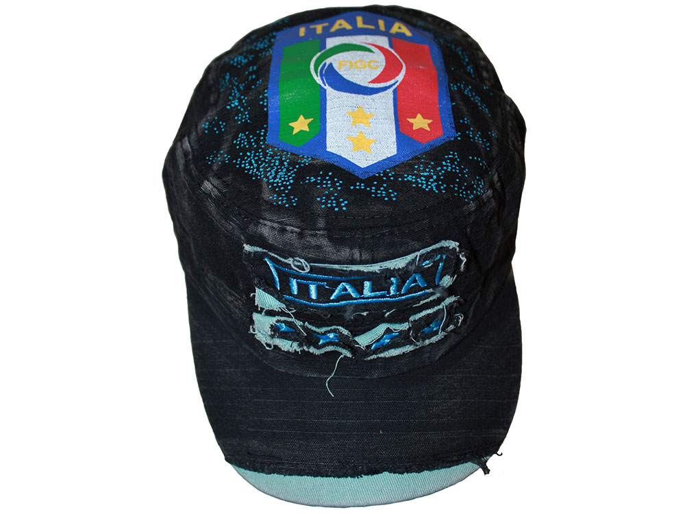 ITALIA ITALY BLACK FIGC LOGO WEAR-LOOK MILITARY STYLE ACID WASHED HAT CAP .. FIFA SOCCER WORLD CUP .. NEW