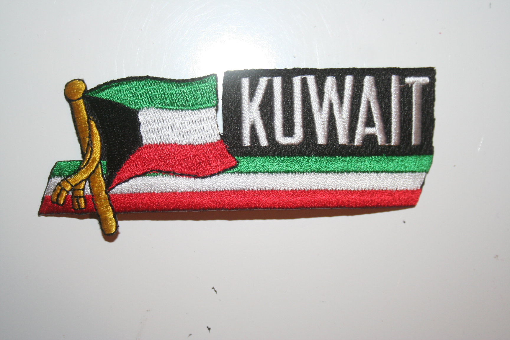 YOU ARE PURCHASING THIS KUWAIT COUNTRY FLAG WORD SIDE KICK IRON ON PATCH CREST BADGE ...IT HAS THE KUWAIT FLAG ON IT WITH THE WORD WRITTEN BESIDE THE FLAG ... IT CAN BE SEWN ON AN ITEM OR IRONED ON ...