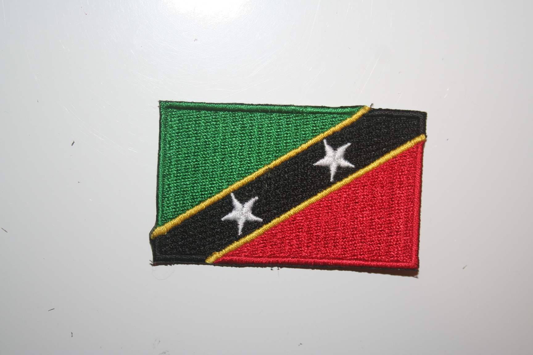 YOU ARE PURCHASING THIS ST KITTS COUNTRY FLAG SMALL IRON-ON EMBROIDERED PATCH CREST BADGE ... IT IS VERY EASY TO IRON ON ANY ARTICLE OR YOU CAN SEW IT ON ...