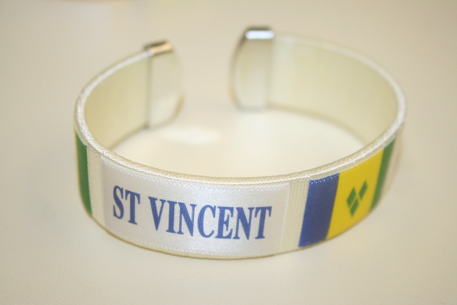 THIS BRACELET IS MADE WITH FLEXIBLE DURABLE PVC WITH NYLON OVER IT...IT HAS ST VINCENT WRITTEN ON IT WITH THE SAINT VINCENT COUNTRY FLAG GOING ALL AROUND THE BRACELET ...